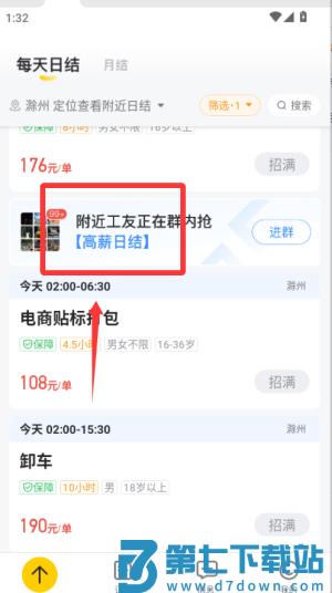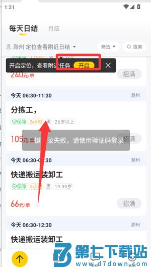1、打开快马日结app后,先允许定位权限,系统会自动推荐你附近的招工岗位。