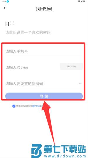1、找回密码需输入手机号、验证码及新密码,完成重置。