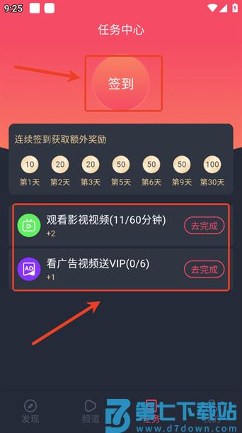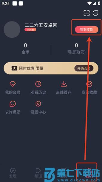 2.这时我们可以点击【我的】--[签到奖励]或【任务】