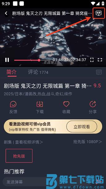2.接着打开动漫共和国app找到喜欢的作品进入播放详情页,点击右上角的投屏标识
