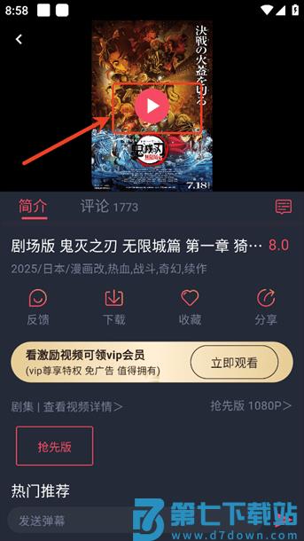 3.下划找到《剧场版 鬼灭之刃 无限城篇 第一章》点击“立即播放”