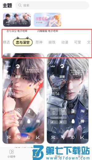 1、下载后先浏览主题库 挑选喜欢的风格 比如可爱风或极简设计 进入分类页就能预览效果 选好后点击下载主题包。
