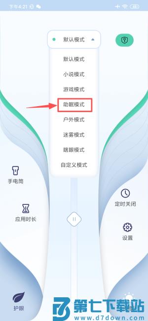 2、选取“助眠模式”选项,进入该功能设置页面。