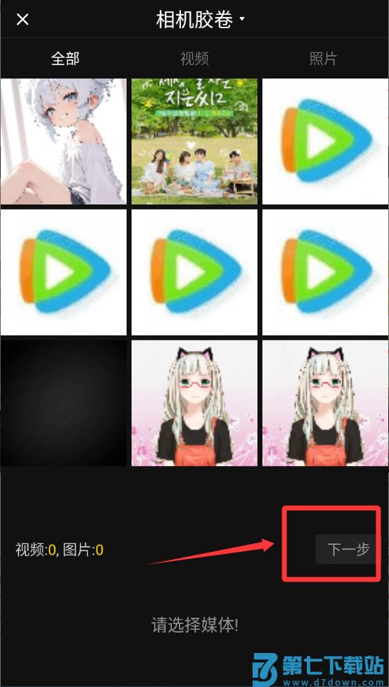 2、选择图片或者视频点击下一步。