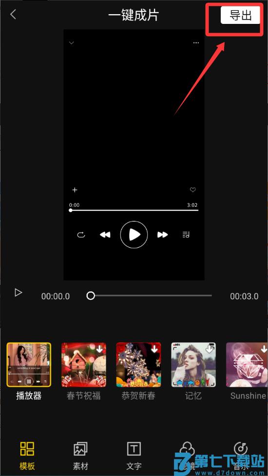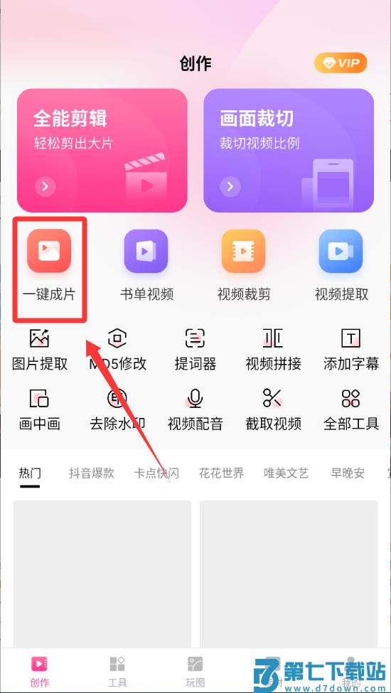 1、点击左边的红色框框一键成片按钮进入。
