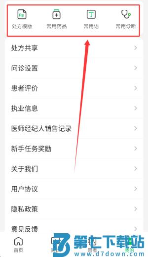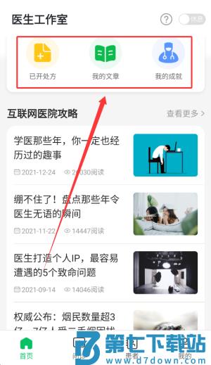 3、首页提供已开具处方查询、个人学术文章管理及专业成就展示功能。