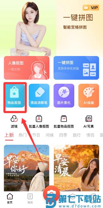 1、快速抠图:选择本地图片,选择需要抠图的部分即可完成抠图;