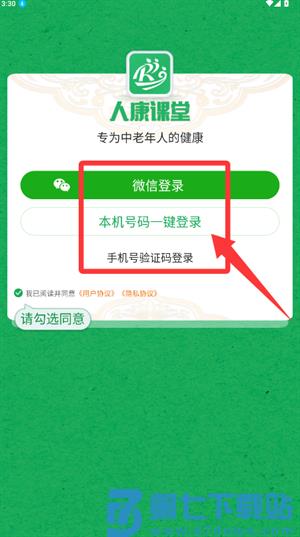 1、确认用户隐私协议后,进入登录方式选择界面。