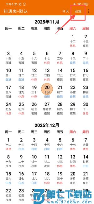 2、于排班表页面选择"设置"选项,进入规则配置界面。