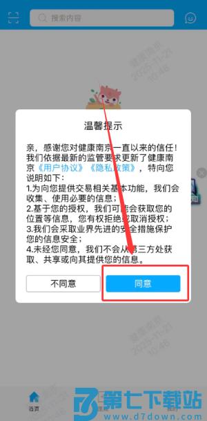 1、首次使用需点击同意用户协议,随后即可进入应用主界面浏览各项功能。