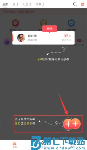 3、点击主界面"+"号,即可添加并管理生日或纪念日记录。