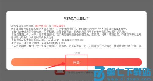 1、在生日助手软件中点击"同意"用户协议,进入程序界面。