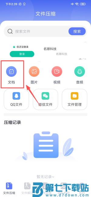 2、进入压缩功能界面点击"文档"按钮,跳转至文件选取页。