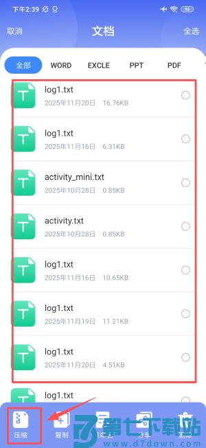 3、从文档列表中选定目标文件,点击"压缩"启动处理流程。