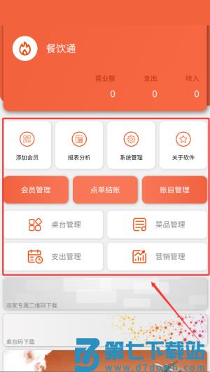 支持会员管理、营业报表、分单打印、菜单管理、用户管理,系统管理等功能