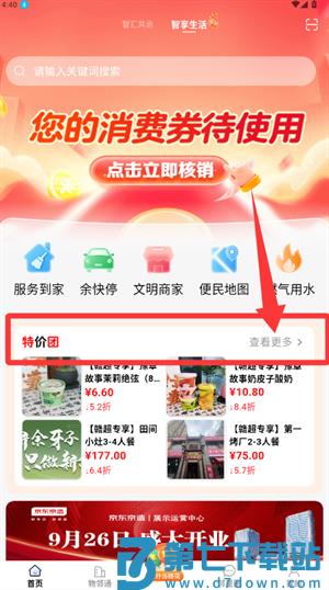 2、返回首页点击特价团查看更多,进入团购活动页面。
