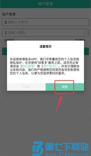 1、在得客多APP中点击"同意"隐私政策,进入程序主界面。