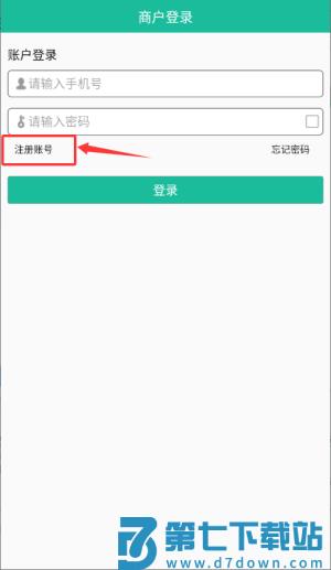 2、于商户登录页选择"注册账号",跳转至信息填写页面。