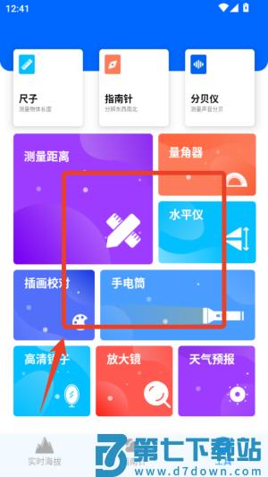 3.提供测量实用工具,测距仪,为您提供高度测量的功能,水平仪,可以查看地面是否水平