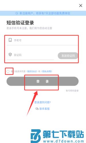 2、输入手机号及验证码并勾选协议,完成登录验证。