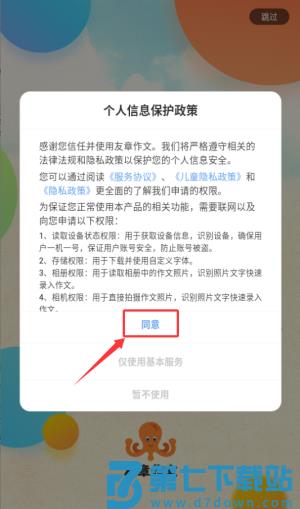 1、在友章作文APP中点击"同意"个人信息政策,进入程序界面。