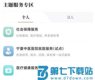 2、点击里面的个人服务,点击医疗健康服务;