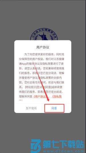 1、首次使用需点击同意用户协议,随后即可进入应用主界面浏览各项功能。