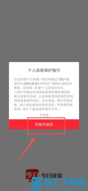 1、在今日快看APP中点击"同意并继续",进入程序主界面。