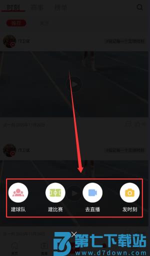 4、通过加号图标可发布动态、创建球队、组织比赛及开启直播等功能。
