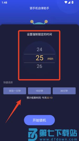 1、安装锁手机自律助手后,先设置一个专注任务和对应的锁定时长。
