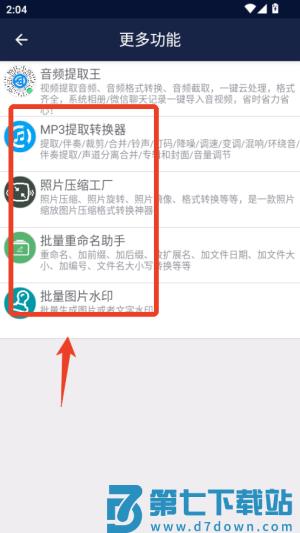 视频压缩王包含功能有:视频压缩、格式转换、去水印、视频在线提取、视频翻转、加水印、视频音轨、视频加字幕、视频截取、视频裁剪、画面调整、画面混合、视频旋转、M3U8制作、视频变速、视频分段、视频拼接、视频转动图、视频打码、音频混合、淡入淡出、音视频同步、照片转视频、视频倒放、视频封面制作等功能。