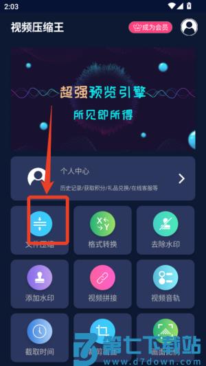 1、下载并打开视频压缩王app,在主界面点击压缩功能,从相册选择需要处理的视频文件。