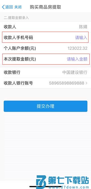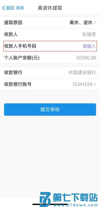 核对个人信息无误,输入收款人手机号码,点击“提交审核”,显示“提交审批成功”则已完成该项业务的申请