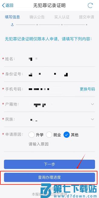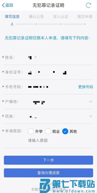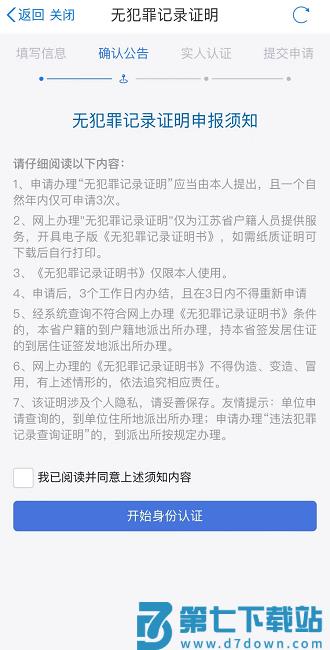 按要求填写信息,进入下一步,阅读无犯罪记录证明申报须知。