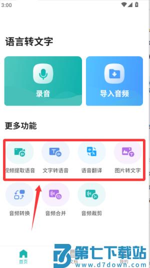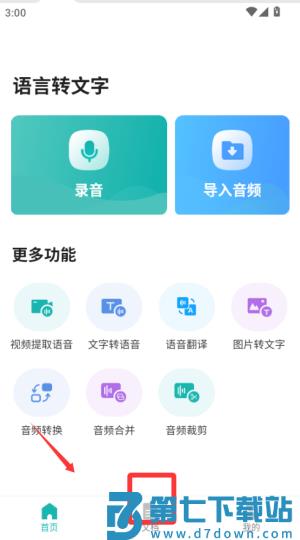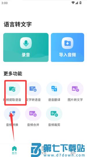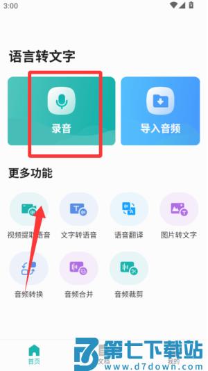 1、下载并打开语言转文字大师app,在主界面选择语音转文字功能开始使用。