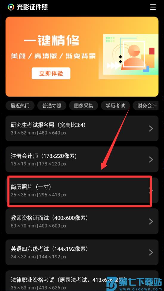 光影证件照App提供超百种官方指定证件照规格;