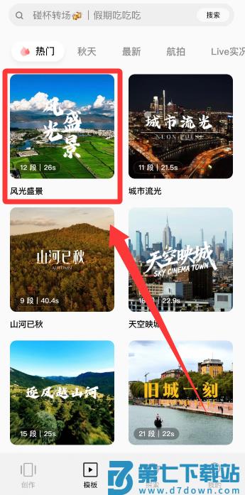 『丰富的创意模板』热门视频模板、VLOG、航拍、旅行、卡点视频模板、萌娃、生活、艺术、照片模板等不同风格视频模板,总有一款适合你。