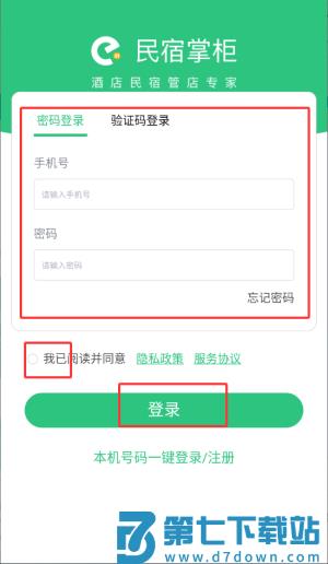 2、于登录页选择密码或验证码方式,输入信息并确认协议后登录。