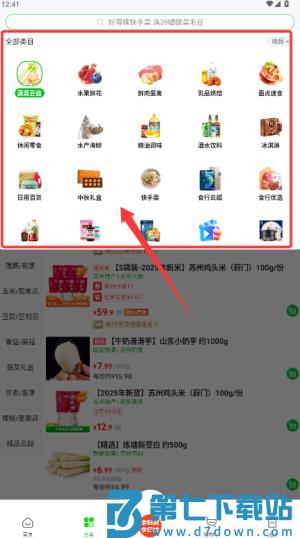 2、返回首页选择分类栏目,挑选蔬菜豆品等商品类别。