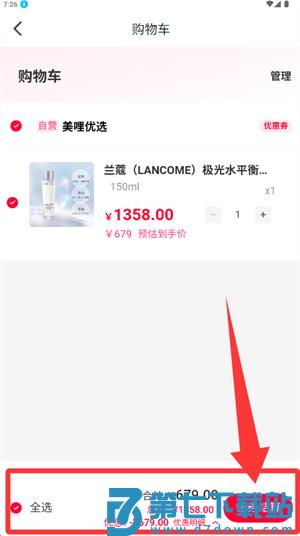 4、最后进入购物车界面,核对所选物品后领券结算完成订购。