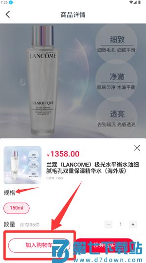 3、在商品页内选定具体规格与购买数量,点击加入购物车。