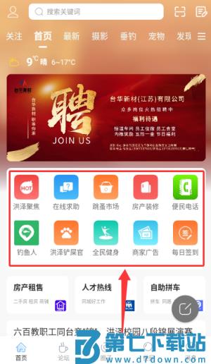 3、通过洪泽聚焦或跳蚤市场等功能,参与本地生活互动。