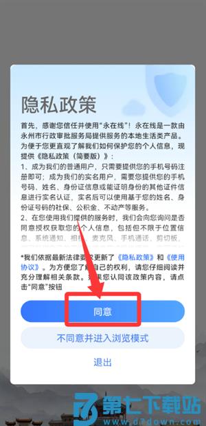 1、首先在隐私政策页面,点击“同意”按钮继续使用应用服务。