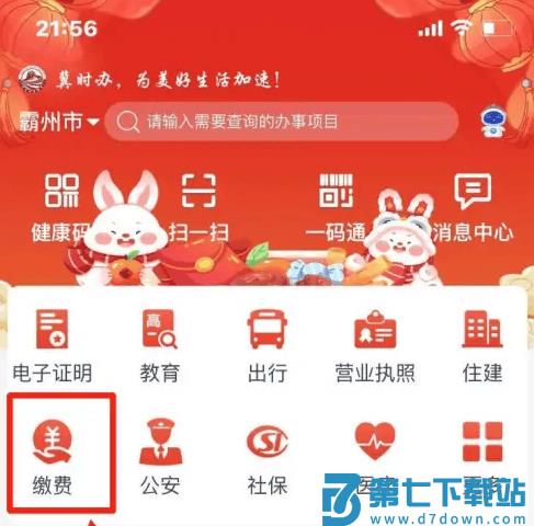 1、点开手机冀时办app,点击首页的缴费窗口。