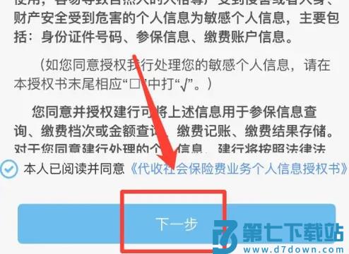 3、跳转到新页面,点击页面底部下一步即可进行医保缴纳。