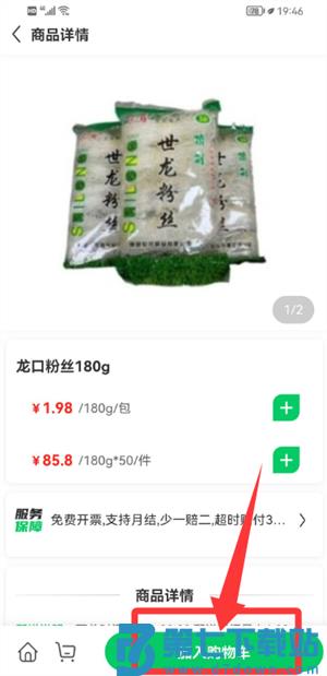 4、选定商品如龙口粉丝,进入详情页后,可将其添加至购物车内。