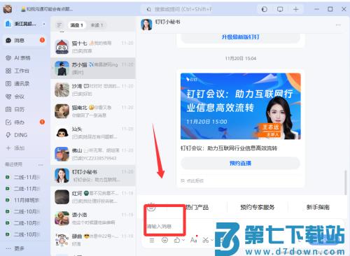 2、需要联系同事时,在消息页面点击加号选择ding功能,输入文字或录制语音,信息会以电话或短信方式送达对方,确保重要通知被及时接收。