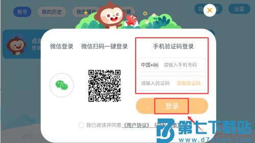 2、选择手机验证码登录方式,输入号码及验证码完成登录。