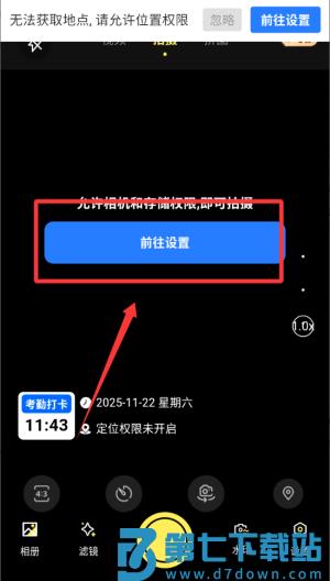 1、启动应用授权相机权限,通过取景框构图并点击快门完成拍摄。