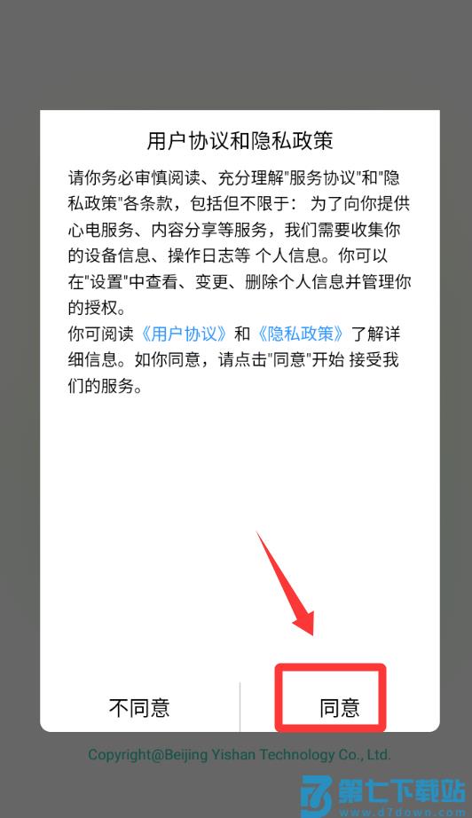 1、点击用户协议和隐私政策里的同意并继续。